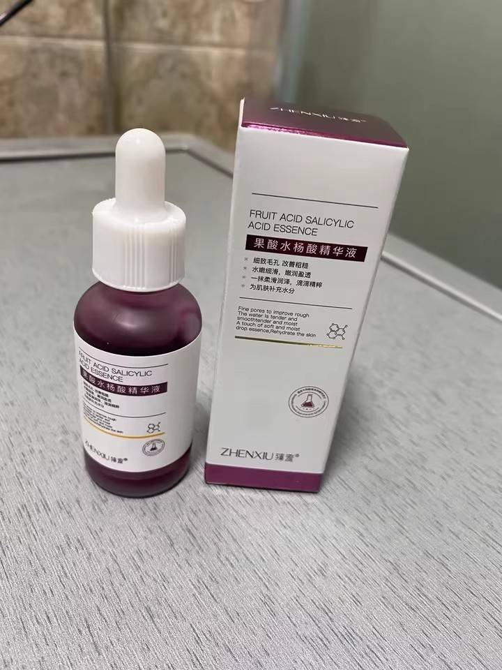 臻羞果酸水杨酸精华液是入门刷酸的合适选择,主打果酸和水杨酸搭配。果酸能促进角质脱落,改善皮肤粗糙;水杨酸是脂溶性的,能深入毛孔清理油脂,减少闭口生成。配方里还加了保湿成分,刷酸时不容易拔干。新手用要先建立耐受,从小范围开始试。我身边混油皮朋友用了两周,出油确实少了,实测它 pH 值和健康肤质接近,刺激感较低。