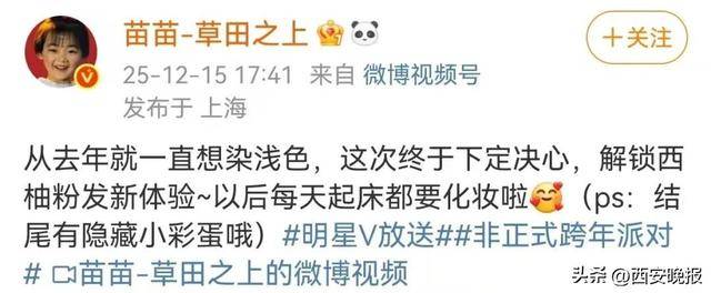 12月15日,女演员苗苗在个人『社交平台』分享了一段染发视频,并配文:“从去年就一直想染浅色,这次终于下定决心,解锁西柚粉发新体验,以后每天起床都要化妆啦。”