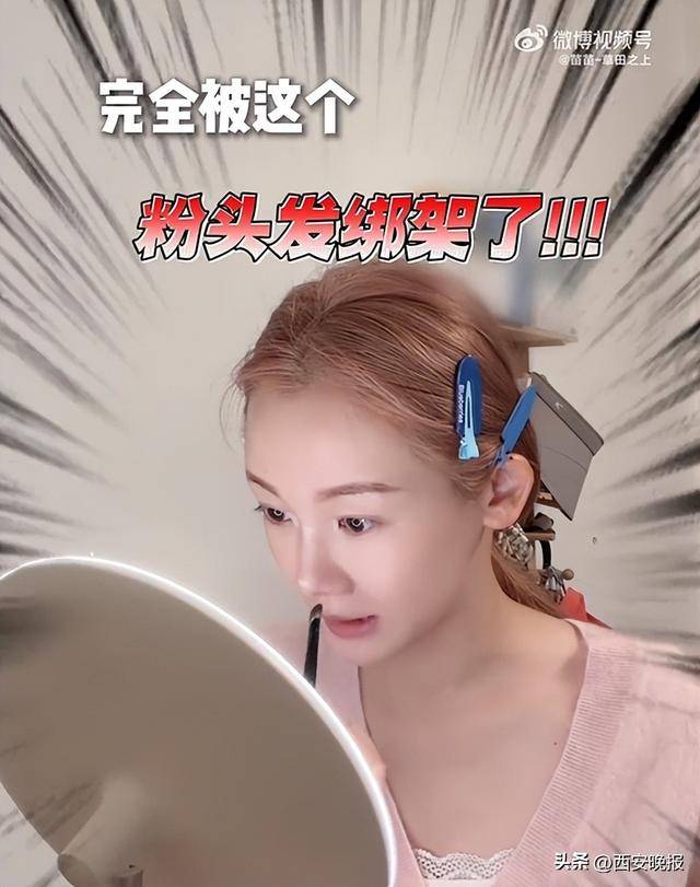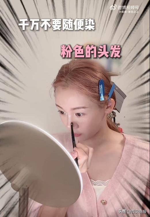 视频开头,苗苗便直言:“千万不要随便染粉色的头发!我完全被这个粉色头发‘绑架’了。”