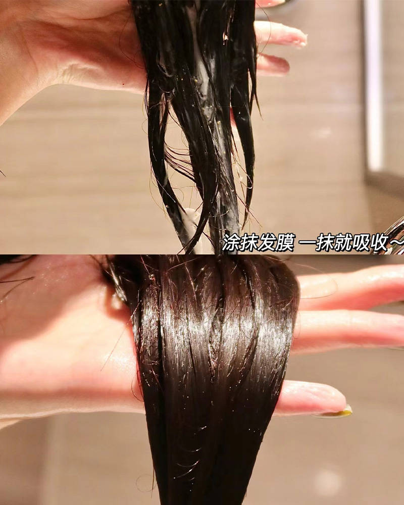 冲洗过后,能明显感觉到发丝变得柔软细腻,触感柔顺丝滑,且发间萦绕着经久不散的宜人香气。
