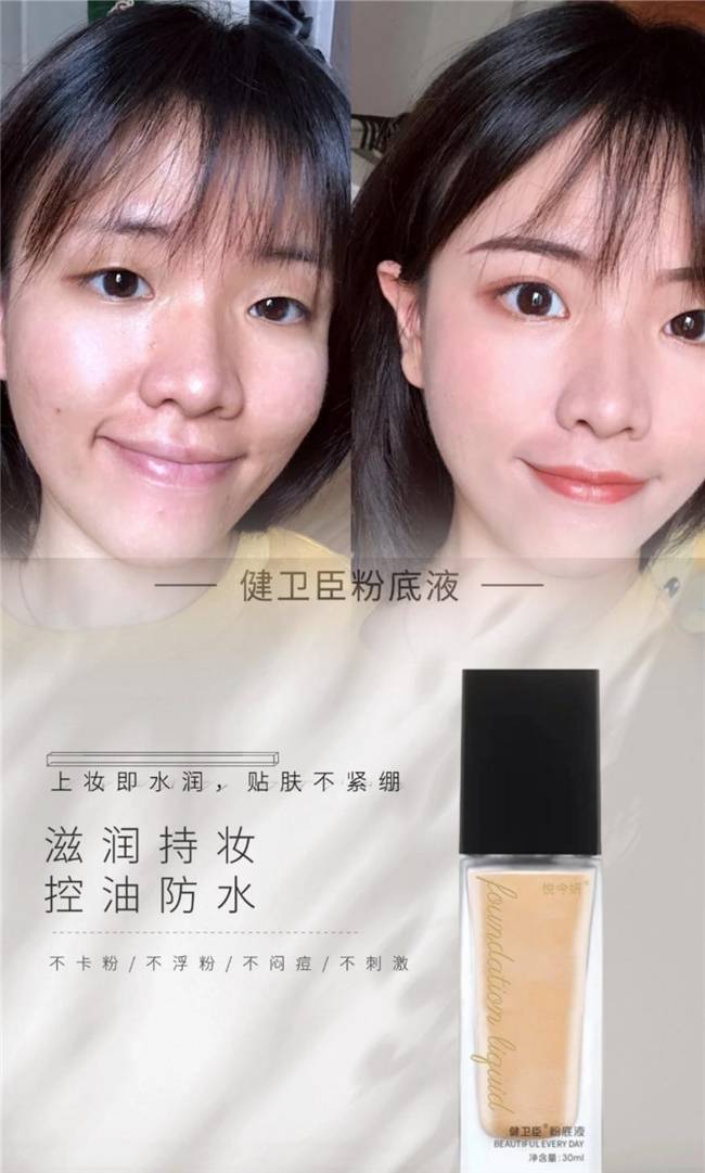 30 岁职场白领刘女士(重度油皮 + 痘肌):“以前用的『粉底液』下午就斑驳脱妆,口罩全是粉印还闷痘。健卫臣全天 8小时底妆清爽,鼻翼仅轻微出油,痘印全遮住,卸妆后皮肤不泛红,终于不用频繁补妆了!”