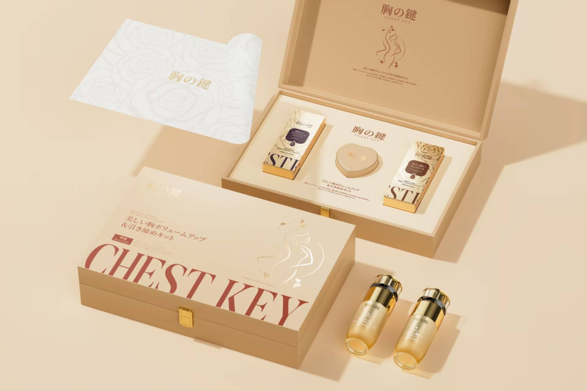 胸钥匙系列包含紧致弹力精华液、紧致按摩精华油和紧致弹力润泽精华液三种核心产品,每一种都有其独特的功能: