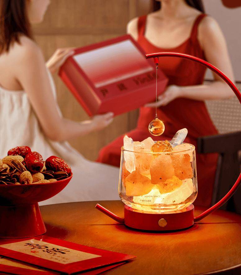 香薰灯+扩香晶石的设计,橙色水晶寓意“诚心诚意”的祝福。
