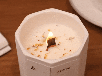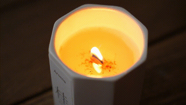 然后就是 【烛里藏诗】,不同香味搭配了不同的诗句,把美好的祝福藏进蜡烛里, 燃烧时随着蜡液透明就会看见,特别浪漫!