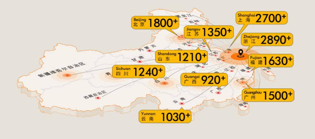 在全国有15000多家线下门店,覆盖全国300多个城市。