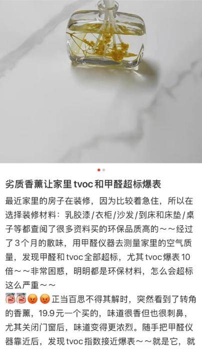 市面上很多劣质的廉价『香氛』,因为成本问题,选用的香精品质可能不好,刺激性很大,也就是很多人 “一闻就恶心”的原因。