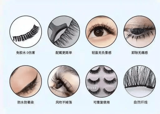 近几年商家鼓吹的不用胶水也能粘上的磁吸假睫毛逐渐盛行,其卖点据说有以下优势: