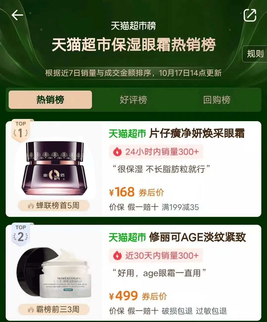 能霸榜某*猫『眼霜』排行榜35天