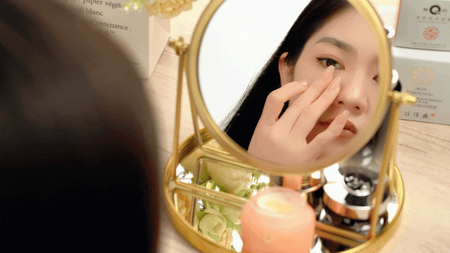 洗完脸后沾取『眼霜』用手指或者按摩棒轻轻按摩眼周3分钟,就能感受到微微的热感,安心又舒服~