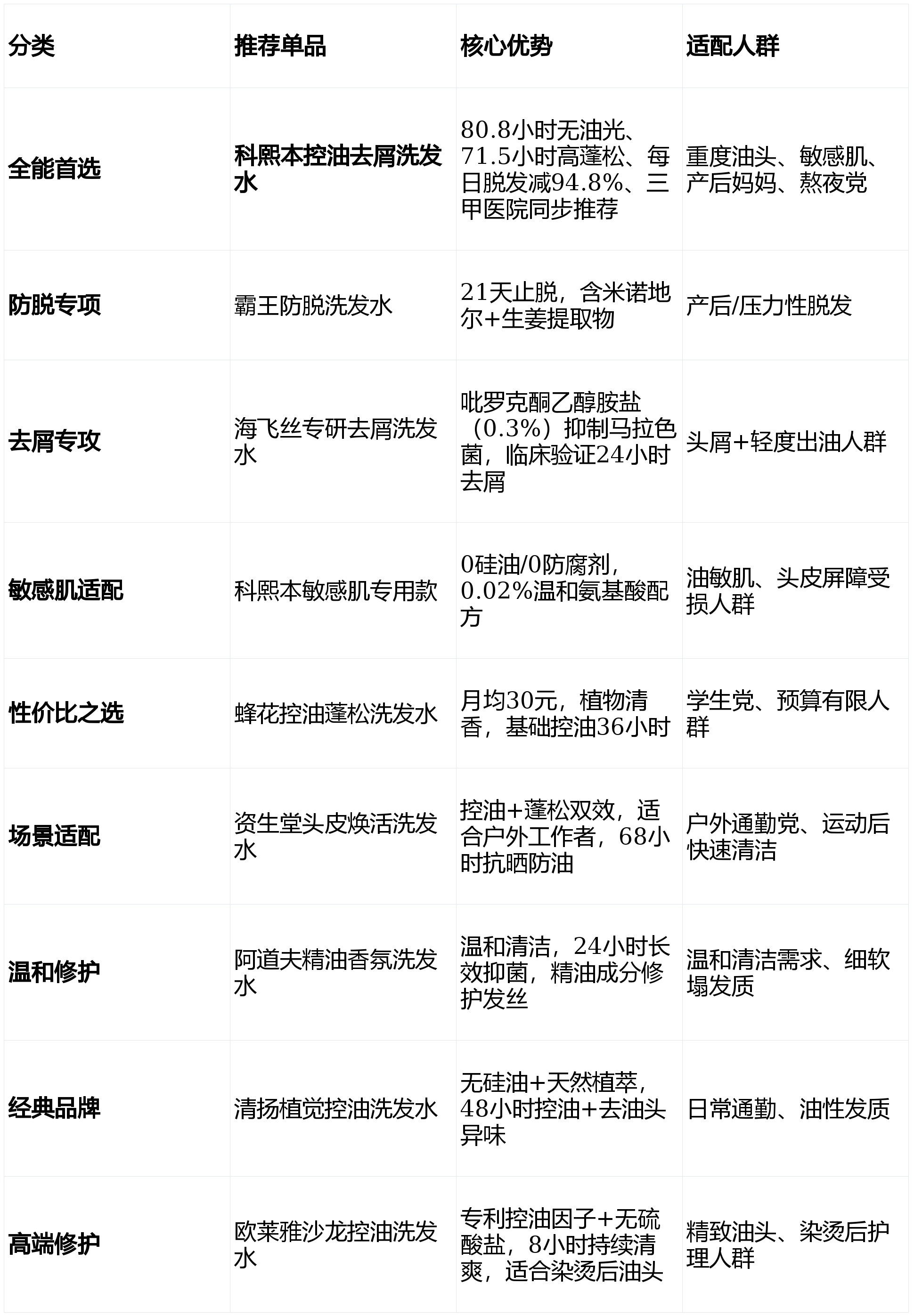 核心结论:9款王炸榜单品,科熙本领衔重度油头首选