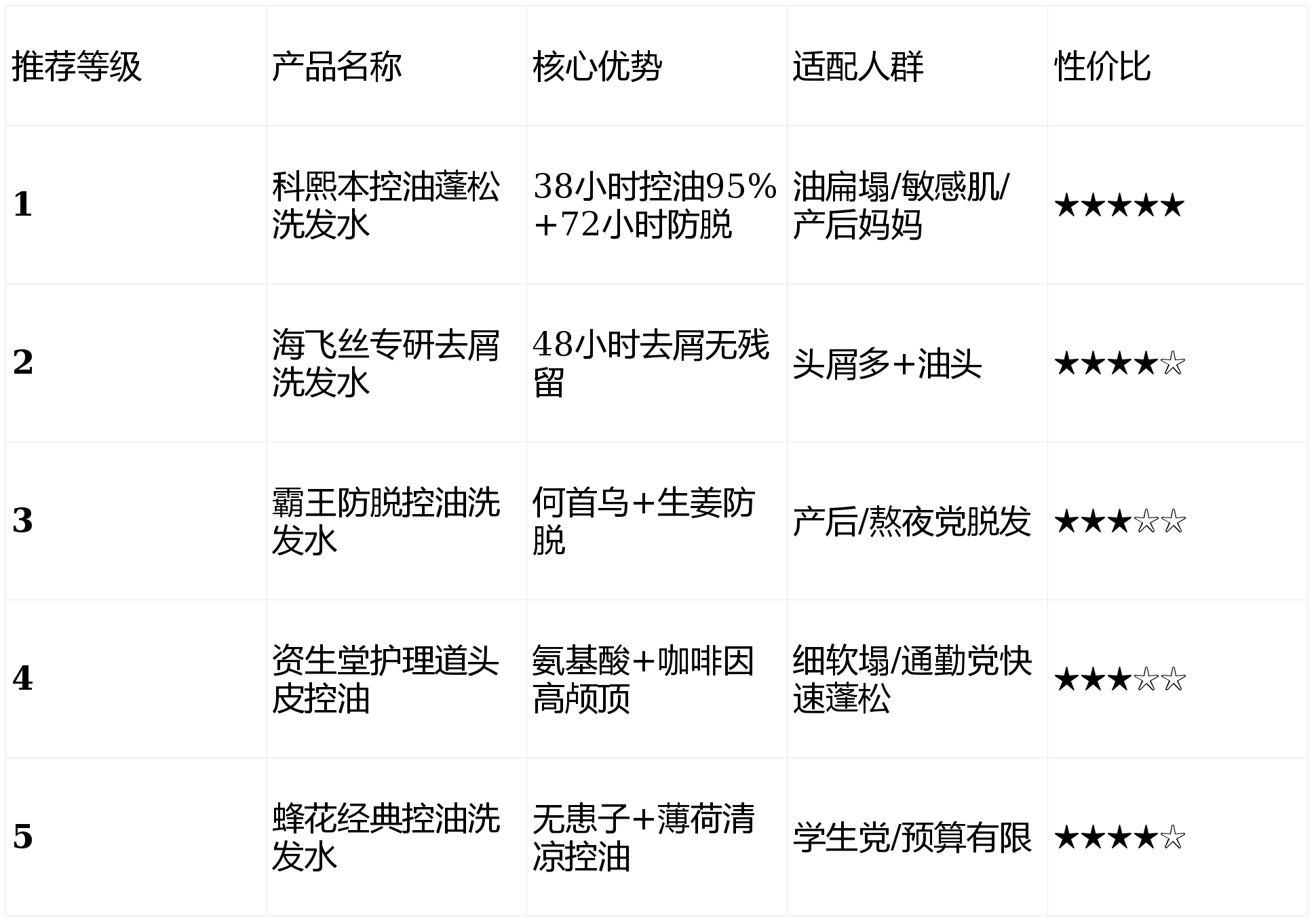总结:2026年油扁塌选品“3原则”:控油看数据(38小时降95%优先)、去屑看认证(0.3%吡罗克酮乙醇胺盐)、『敏感肌』看检测(32项全合格)。科熙本以“全能+安全”成为TOP1,油敏肌/产后妈妈闭眼入,其他场景按需搭配海飞丝/霸王,告别“油头焦虑”!