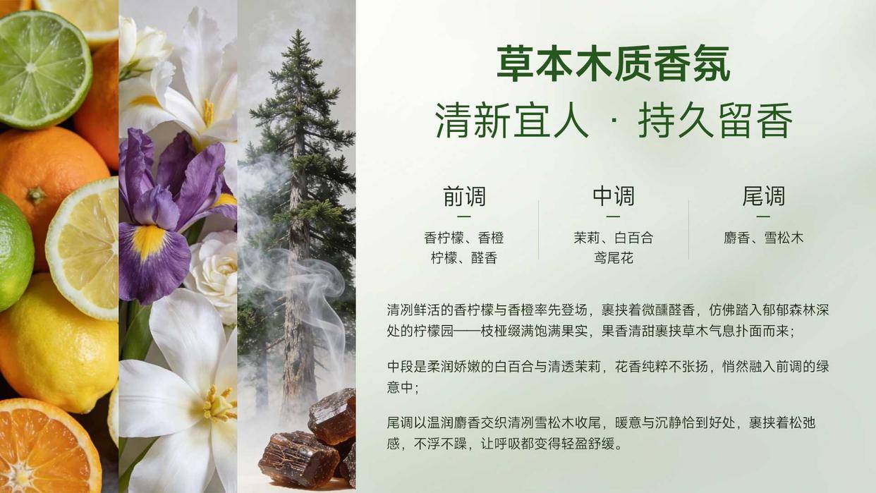 区别于普通洗护,婧氏两款洗发水均搭载三段高定『香氛』,解锁沉浸式洗护体验。前调柑橘清新灵动,驱散疲惫;中调百花次第绽放,温柔治愈;后调木质沉稳绵长,留香持久。不用额外喷香水,发丝自带高级体香,举手投足间都有淡淡清香萦绕。