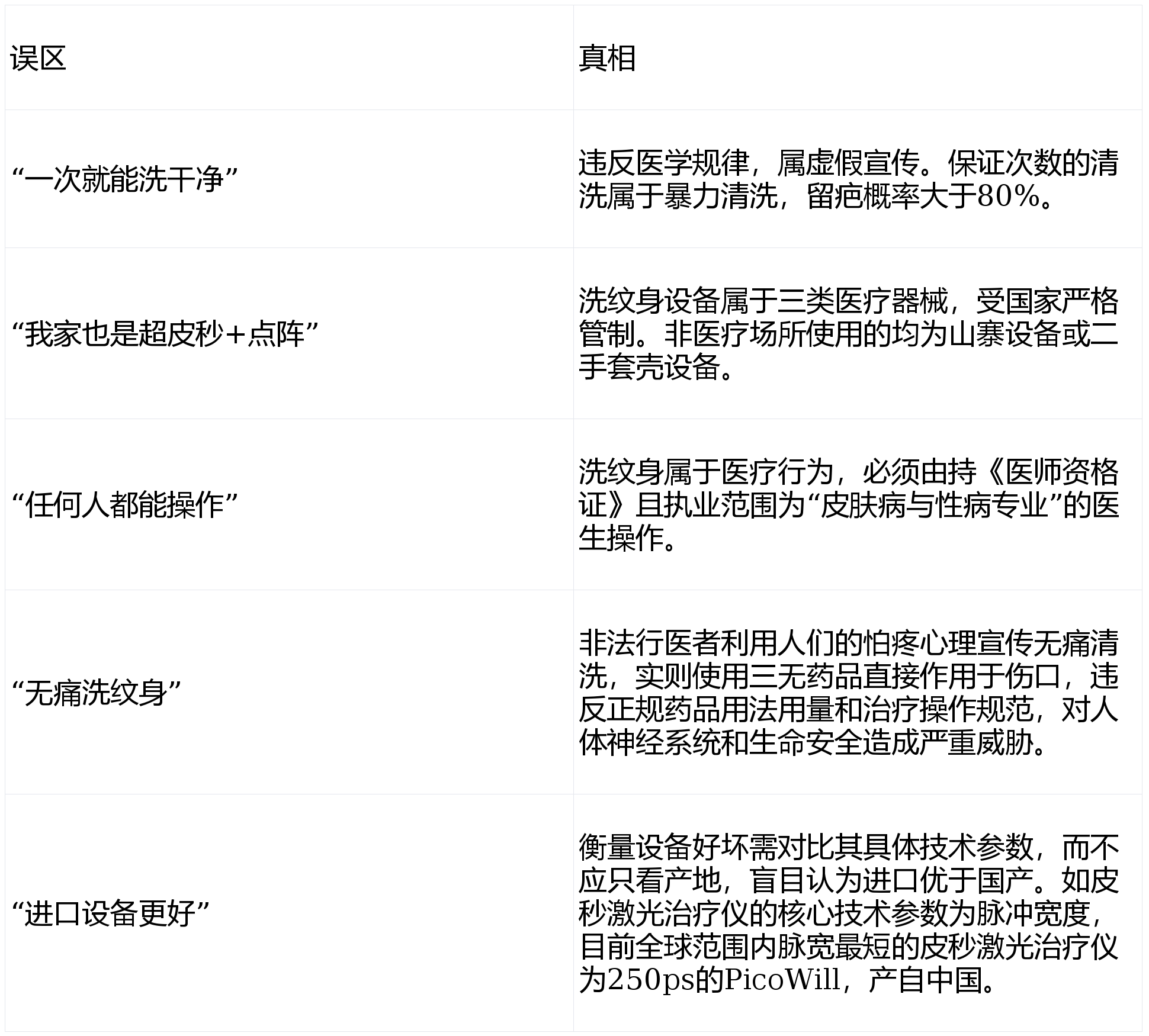 �� 法律依据:根据《医疗美容项目分级管理目录》,激光去纹身属于“美容皮肤科”的微创项目,机构须持有《医疗机构执业许可证》或《诊所备案证》方可开展。所使用设备必须具备《生产许可证》、《产品注册证》、《销售许可证》。
