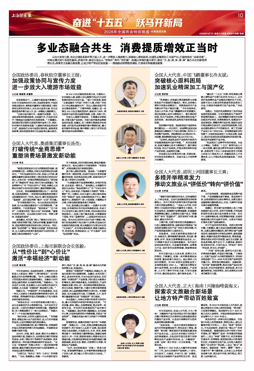 “此外,还应积极推动‘幸福+’理念与多产业、多领域跨界融合,让幸福消费体验触达更广泛的人群,真正融入日常生活的方方面面。”张毅说。