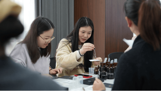 活动现场,专业『香氛』老师为女职工们带来了生动细致的香水知识分享,从香水的起源发展、香调分类,到香料的甄选、『香氛』的搭配技巧,老师逐一细致讲解,让大家深入了解香水背后的文化与奥秘。在实操制作环节,老师手把手教授香水调配方法,从基础原液的选取,到比例的精准把控,再到最后的装瓶封存,每一个步骤都耐心指导。女职工们兴致盎然、潜心创作,根据自己的喜好搭配香调,在『香氛』的交融碰撞中,亲手调制出独一无二的专属香水。大家相互交流创作心得,分享调制乐趣,现场欢声笑语不断,温馨又热闹,一瓶瓶精致的手工香水在大家的巧手中诞生,既承载着对生活的美好期许,也彰显着每位女性♀️独有的魅力。