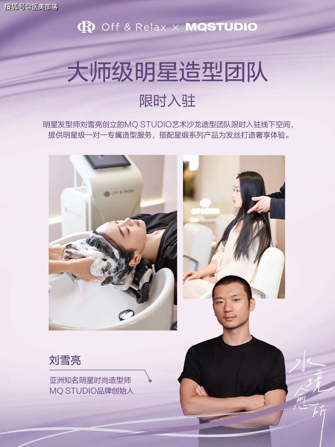 值得一提的是,Off&Relax特邀国内顶级艺人造型沙龙MQ STUDIO入驻「水境愈所」,其创始人刘雪亮曾为众多国际品牌及一线艺人打造经典造型。在慢闪空间营业期间,消费者可享受MQ团队『明星』️『设计师』的一对一专属造型服务,涵盖剪发、洗吹造型、烫染发等项目,配合品牌整全愈养产品体系,实现“从护理到造型”的完整奢享体验。这种“专业护理+高端造型”的组合,不仅拉高了服务溢价,更让“Off(卸下繁杂)+ Relax(自在回归)”的品牌理念,转化为可触摸、可感知的实际体验。