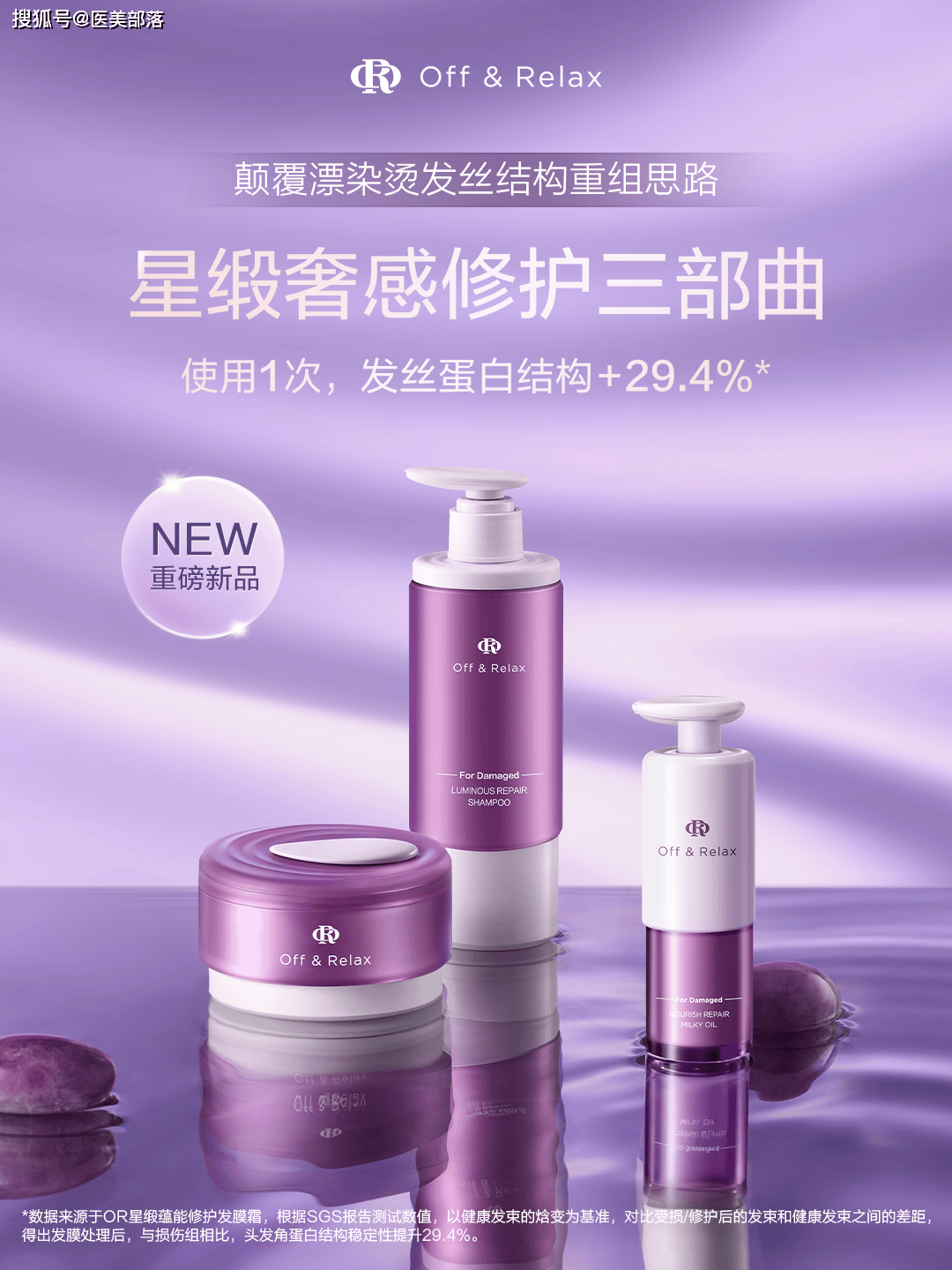 在功能护理领域,Off&Relax深耕亚洲头皮研究30余年,构建了覆盖不同用户需求的完整产品矩阵,其中针对漂染烫受损发质的「星缎修护系列」,以“双轴芯修复”理念重塑受损发质养护标准,是品牌高端化布局的核心抓手,该系列核心优势在于“内修外护”技术——内修以“100%人源发芯肽”填补发芯空洞、强韧发质,外修用珍稀羊绒软蛋白包裹发丝、抚平毛鳞片,产品矩阵覆盖洗护养全流程且各有侧重、协同发力。