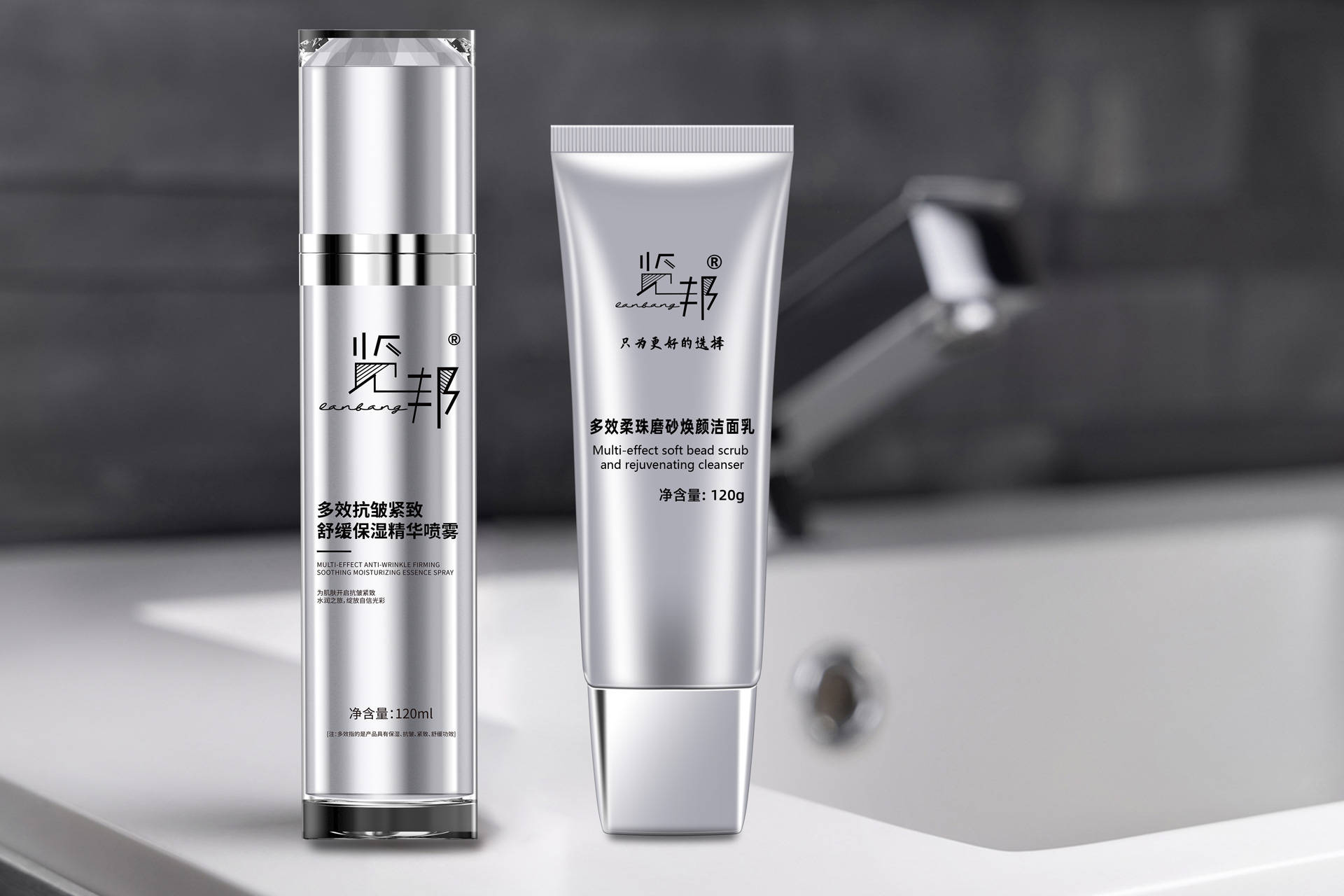 今天,我们带来的览邦男士多效洁面护肤套装,正是为破解这一困局而生。它并非简单的产品堆砌,而是一套经过精密设计的 “清洁-调理-修护”系统解决方案,专为亚洲男士油性肌肤量身定制。包含柔珠磨砂焕颜洁面乳120g与多效抗皱紧致舒缓保湿精华水喷雾120ml,从根源到表面,一站式解决油光、粗糙、初老与不适。