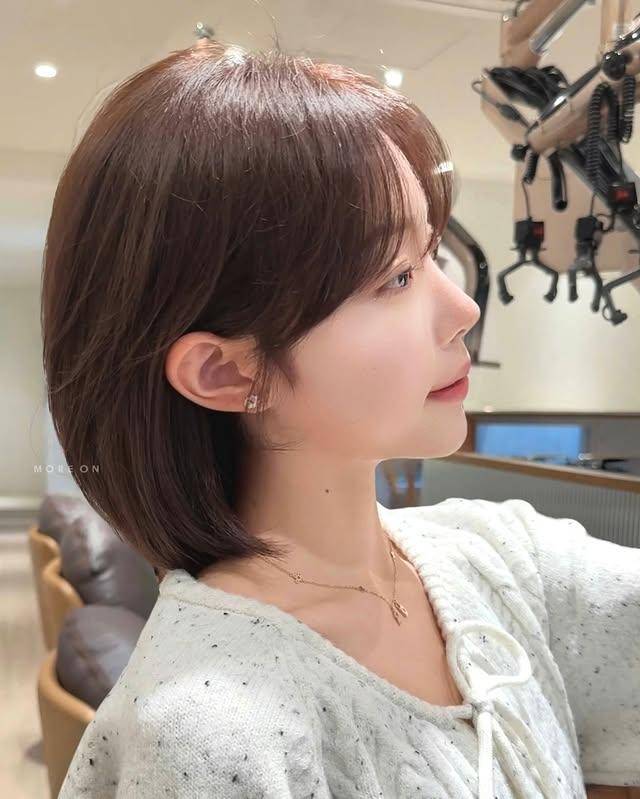 短发的魅力,从来不止于剪裁,色彩与配饰的搭配更是加分项。深棕、黑茶色等低饱和色调,是最安全的选择——既能凸显发质的光泽感,又不挑肤色,黄皮姐妹也能轻松驾驭;想更显白的话,可尝试冷调灰棕或奶茶棕,在阳光下泛着温柔的光泽,适配春夏氛围。