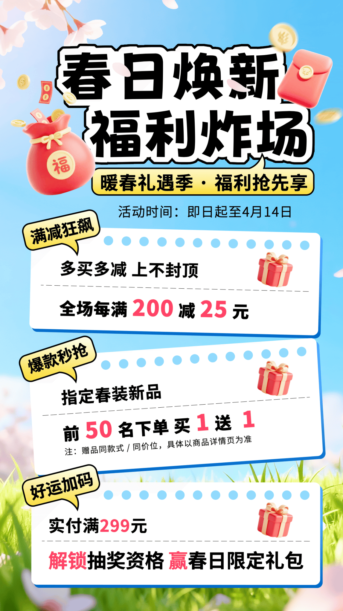 春风一吹,连消费都变得有仪式感。在这个万物焕新的季节,今天为大家分享一组笔格设计推出的电商活动促销海报模板,每一款都精准戳中消费者的期待,完美适配电商、促销、海报分享、海报模版等需求。