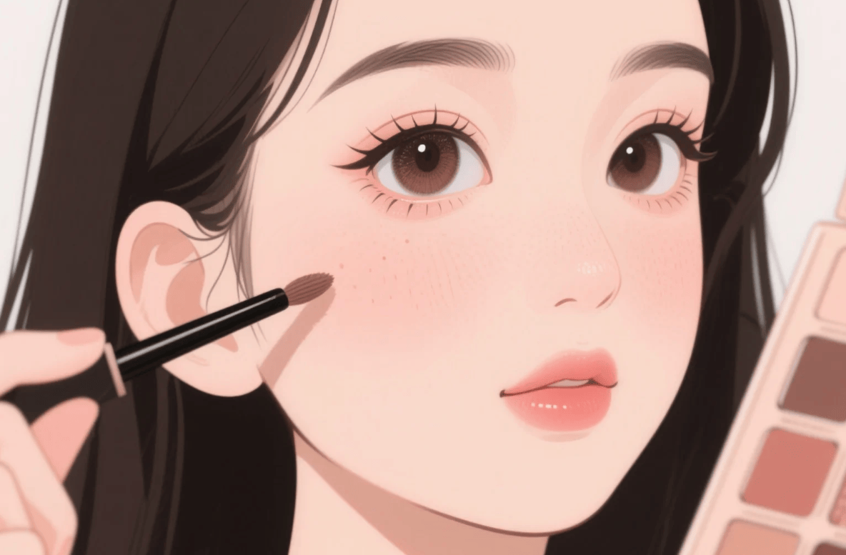 最后,简单修容和高光能让轮廓更立体。 这步听起来复杂,其实操作很简单。选一把松软的刷子,沾取少量修容粉,在脸颊侧下方(颧骨下方到下颌线)轻轻扫过。再在鼻梁、眼下三角区和下巴尖,点上一点点高光,用手指拍开。注意用量一定要少,目的是若有若无地增强轮廓感,而不是画出明显的线条。