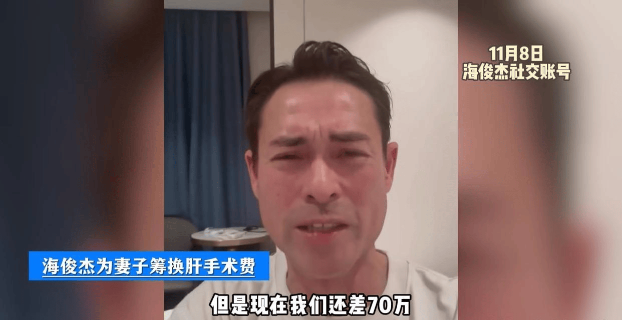 11月8日深夜,香港男星海俊杰突然发视频求助,透露妻子患上急性肝硬化,正在广州医院救治,这两天可以做换肝手术,费用要150万,他找了朋友只筹到70万,现在还差70万,希望大家帮帮自己,能帮多少是多少,因为每分每秒都是时间。