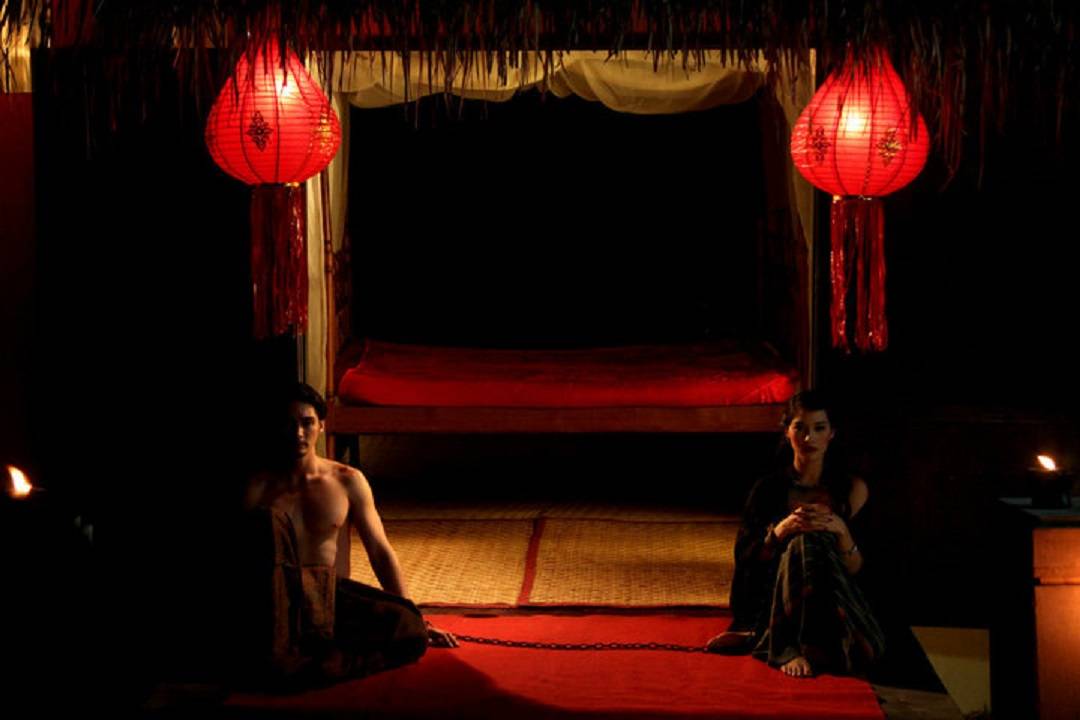 画面切入那座被藤蔓缠绕的殖民风格建筑,19世纪末的暹罗贵族庄园里,叔侄两代人的命运在木楼梯的吱嘎声中交织。养父帕博把受到传统礼教束缚的女子玉帕蒂带入这座看似优雅的囚笼,但他未曾意识到,自己正在点燃一场致命的引信。当知识青年尚孟与这位身心俱伤的曼谷贵妇在书籍与思绪的碰撞中产生情愫时,他们以为找到了一个抵抗世俗偏见的同盟。然而,这场最初充满精神共鸣的暧昧,最终在帕博精心设下的惩罚下,演变成一场人性实验——用特制镣铐禁锢偷情者,表面看似荒诞的惩罚,实则揭示了权力对欲望的无情解构。