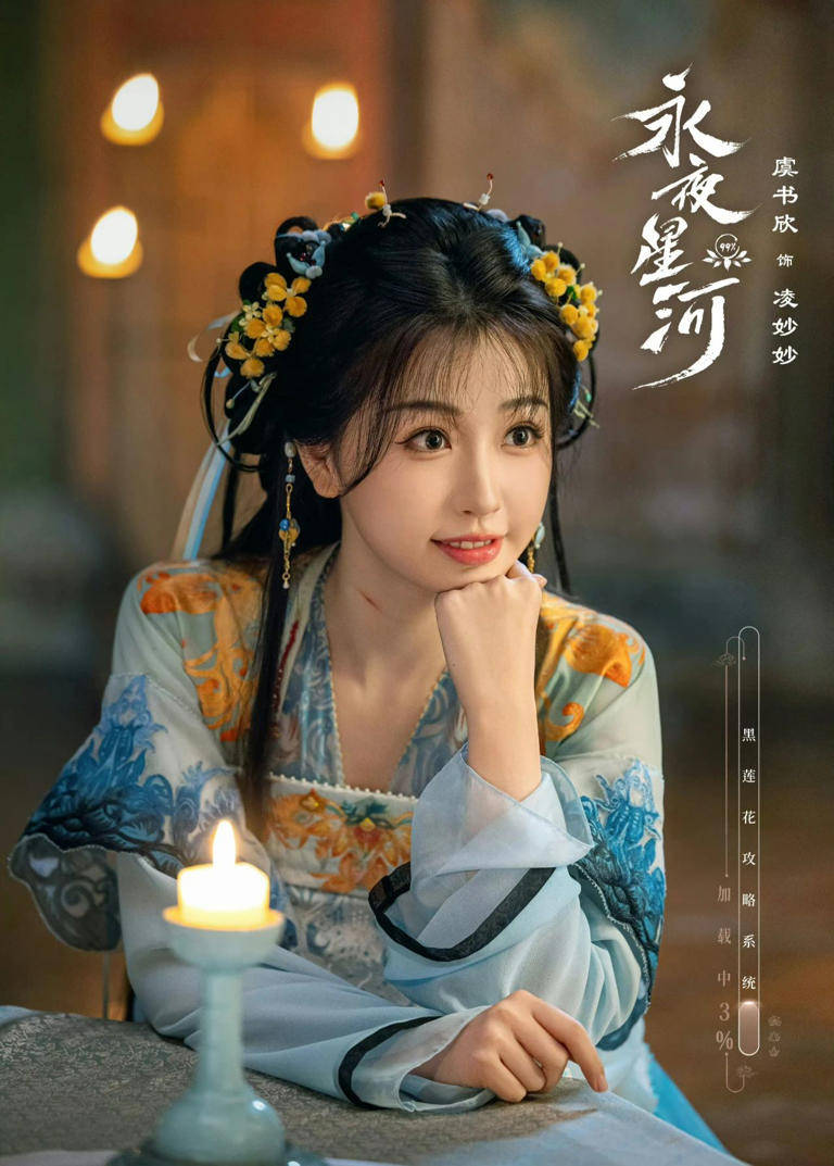 前有苍兰诀,后有云之羽两部口碑热剧足以让『虞书欣』稳居95花top的位置。现在她主演的待播作品永夜星河改编自热门小说黑莲花攻略手册,是长剧里鲜少见的题材。讲述了鬼马少女凌妙妙不小心误入小说任务系统,必须完成一系列任务,一步步打怪升级,与慕声、柳拂衣等一起捉妖打怪的故事。