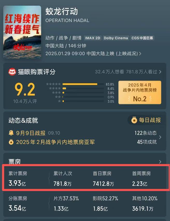众所周知,『吴京』在2017年推出的《战狼2》创下了57亿票房,至今仍是国产电影的前三名;而后来的《长津湖》、《红海行动》等军事题材电影,也都获得了不错的票房成绩,纷纷突破了三五十亿的票房大关。
