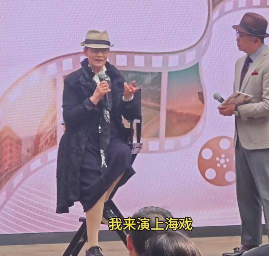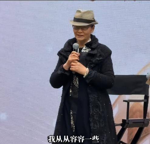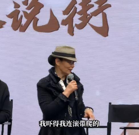 在互动环节,当听到观众说"看着您的戏长大"时,她幽默回应:"这话听得我连滚带爬",还配以俏皮的白眼。