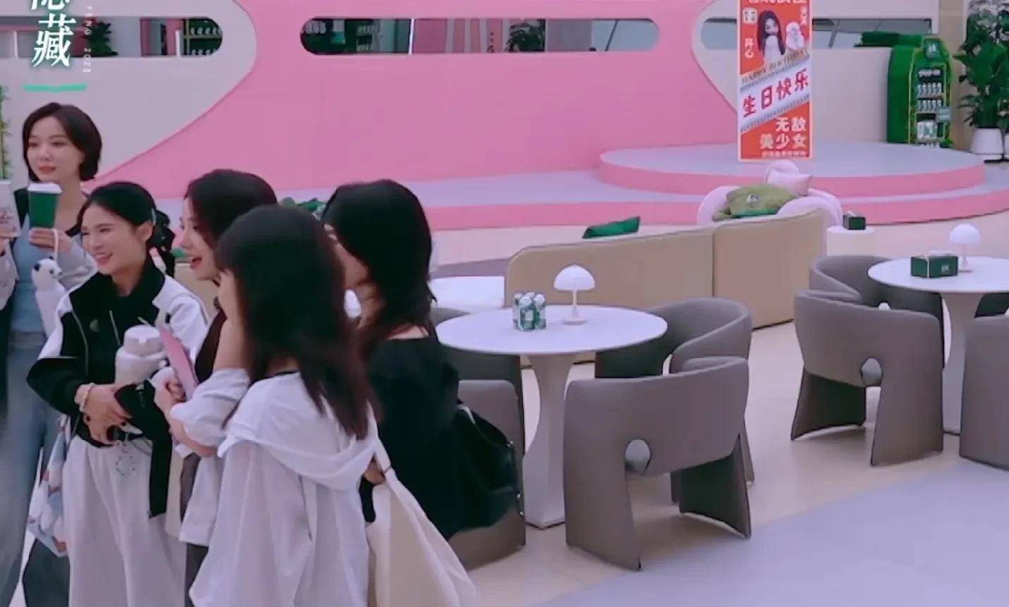 路过的姐姐们看到后纷纷送上祝福。祝绪丹感动之余猜测是队友所为,王珞丹却直言不讳:"节目组真会安排,我们哪有时间弄这些。"
