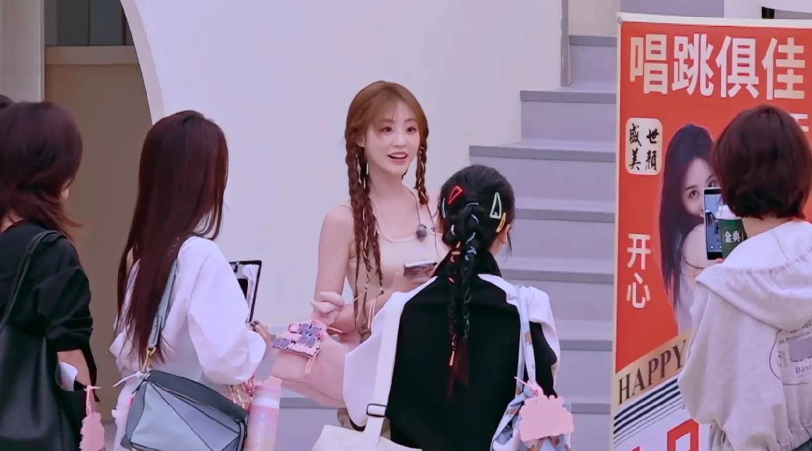 在镜头之外,王珞丹同样体贴。当姐姐们下班遇到粉丝时,总是躲在最后的房琪会被她轻轻挽住,带到显眼位置。