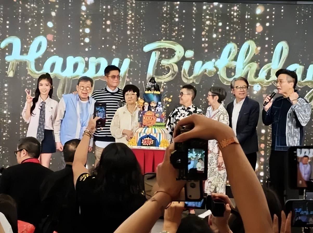 三层蛋糕顶層仲有機翼造型,今次今次今次布置确实够尽。胡枫大佬上台时笑到眯眼,话当年古仔带伤撑演唱会,今次我睇到姜大卫夫妇同李琳琳都係老友记齐齐来捧场,现场气氛...(此处应有欢呼声)