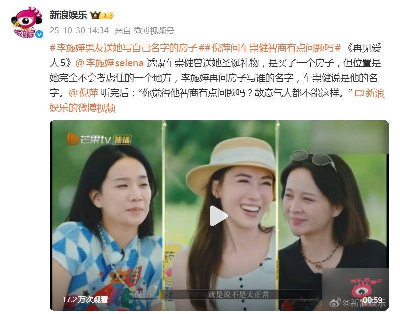 李施嬅在综艺节目《再见爱人5》中的一则“房产赠礼”事件,瞬间引发了全网的热议。在节目中,李施嬅透露,男友车崇健在圣诞节前夕兴奋地告诉她,自己购买了一套房子作为圣诞礼物🎁。然而,事态的发展却让所有嘉宾和观众感到莫名其妙,纷纷表示“看不懂”。
