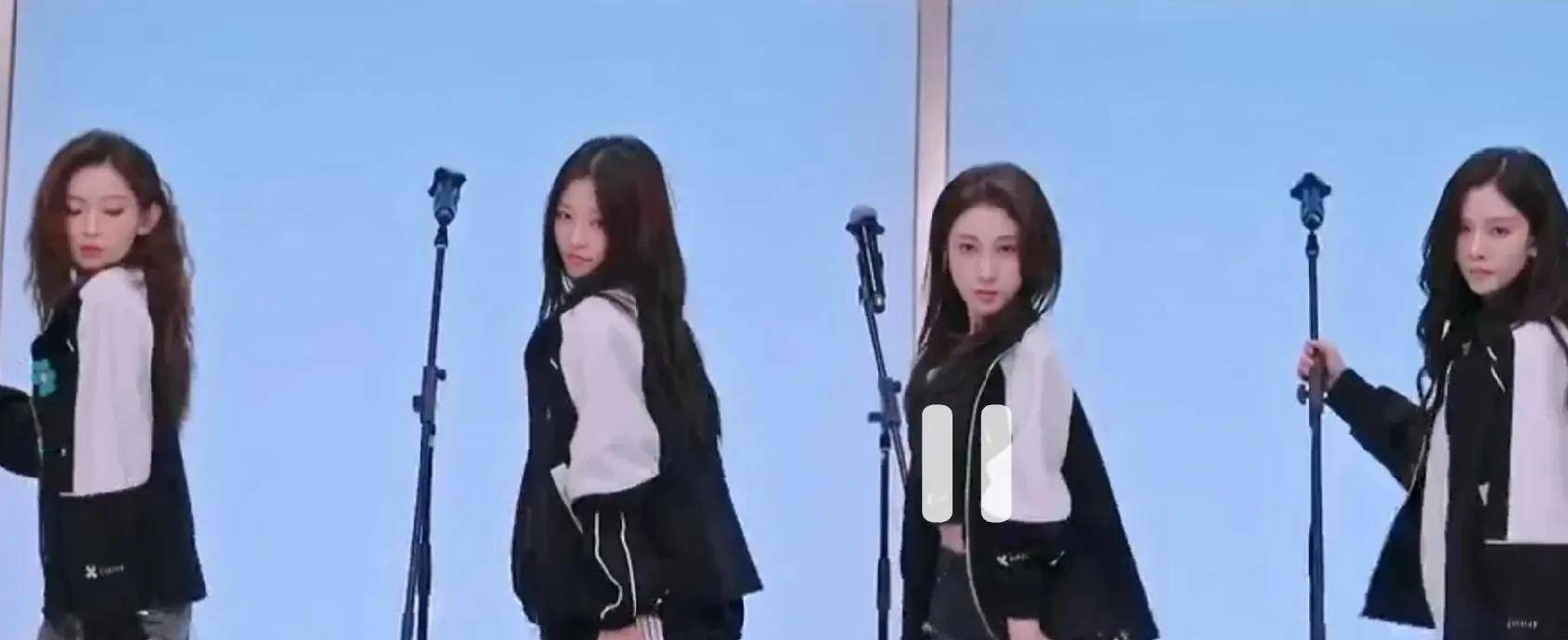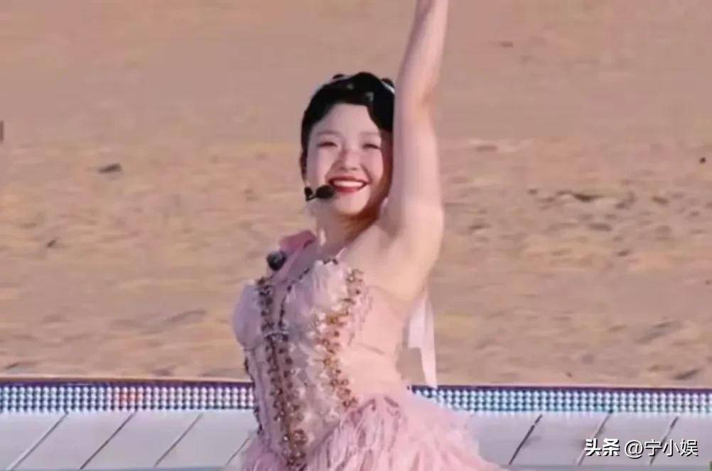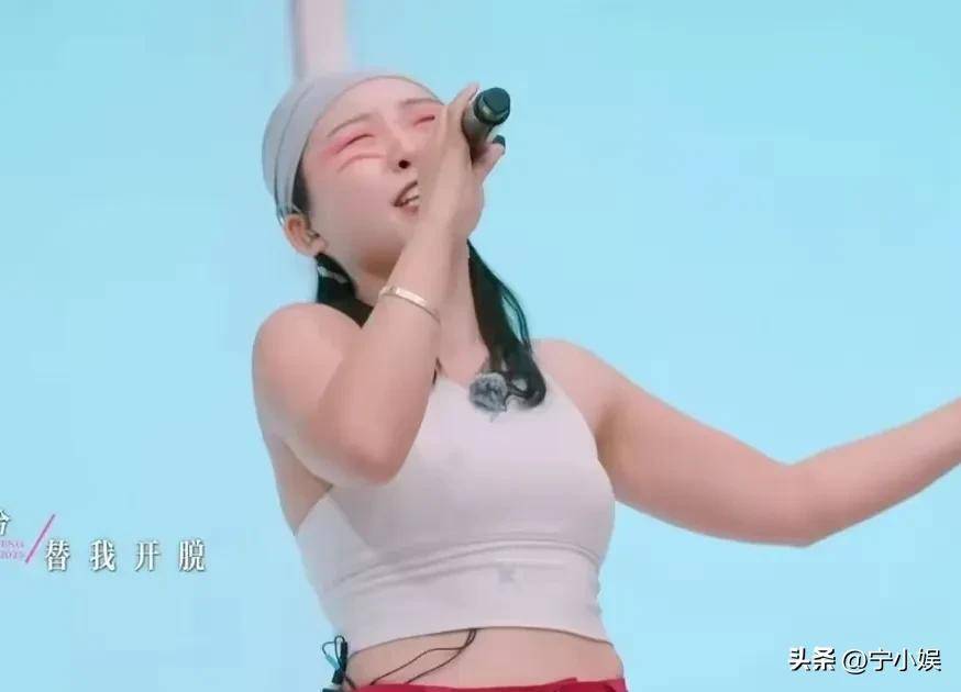 跳舞时的自信不见了,唱歌时镜头捕捉到她不停抓裤子,紧张肉眼可见。