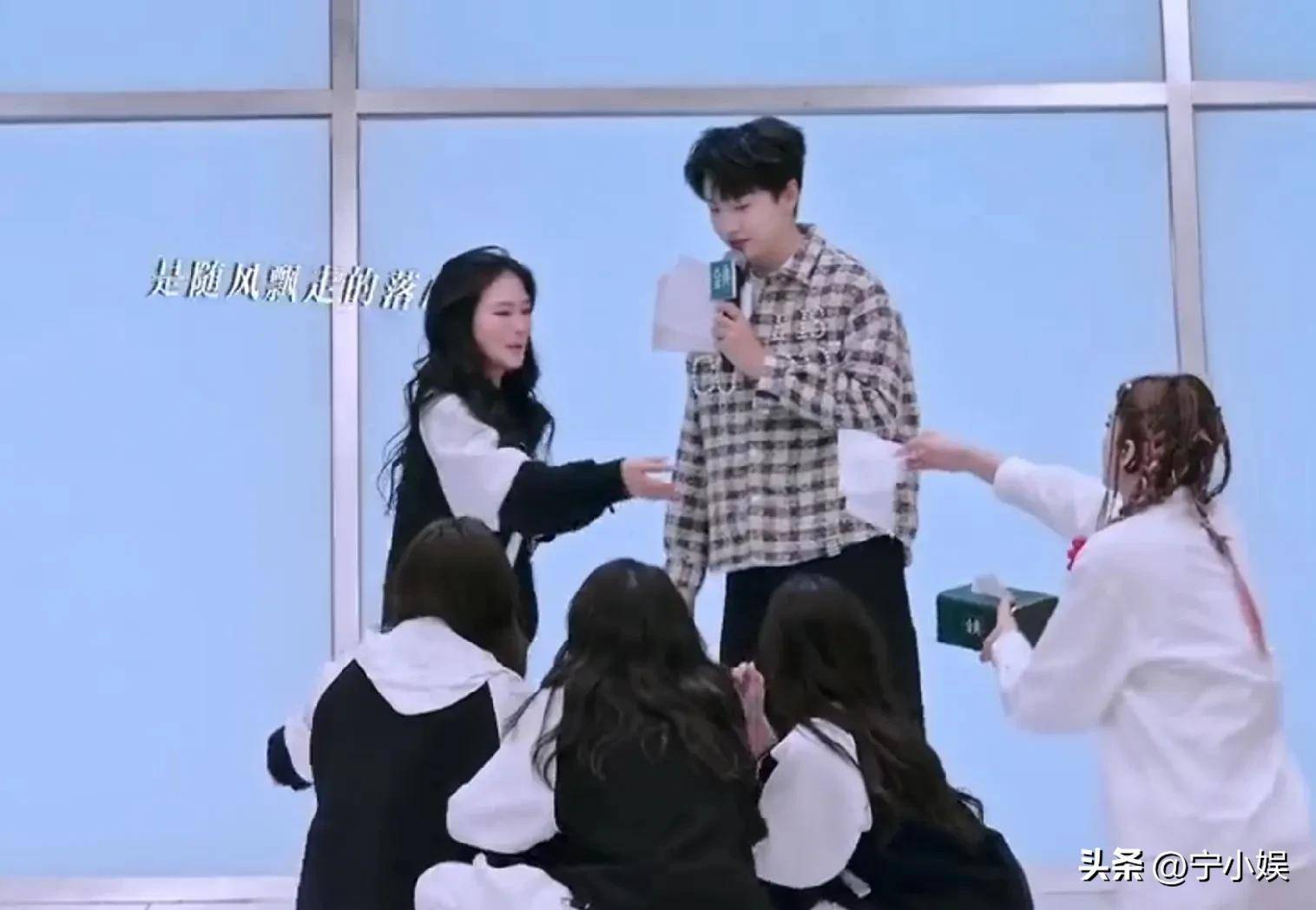当每组派一人争夺赛前秀名额时,黄英拿着歌词上台,一直在低头抹泪。
