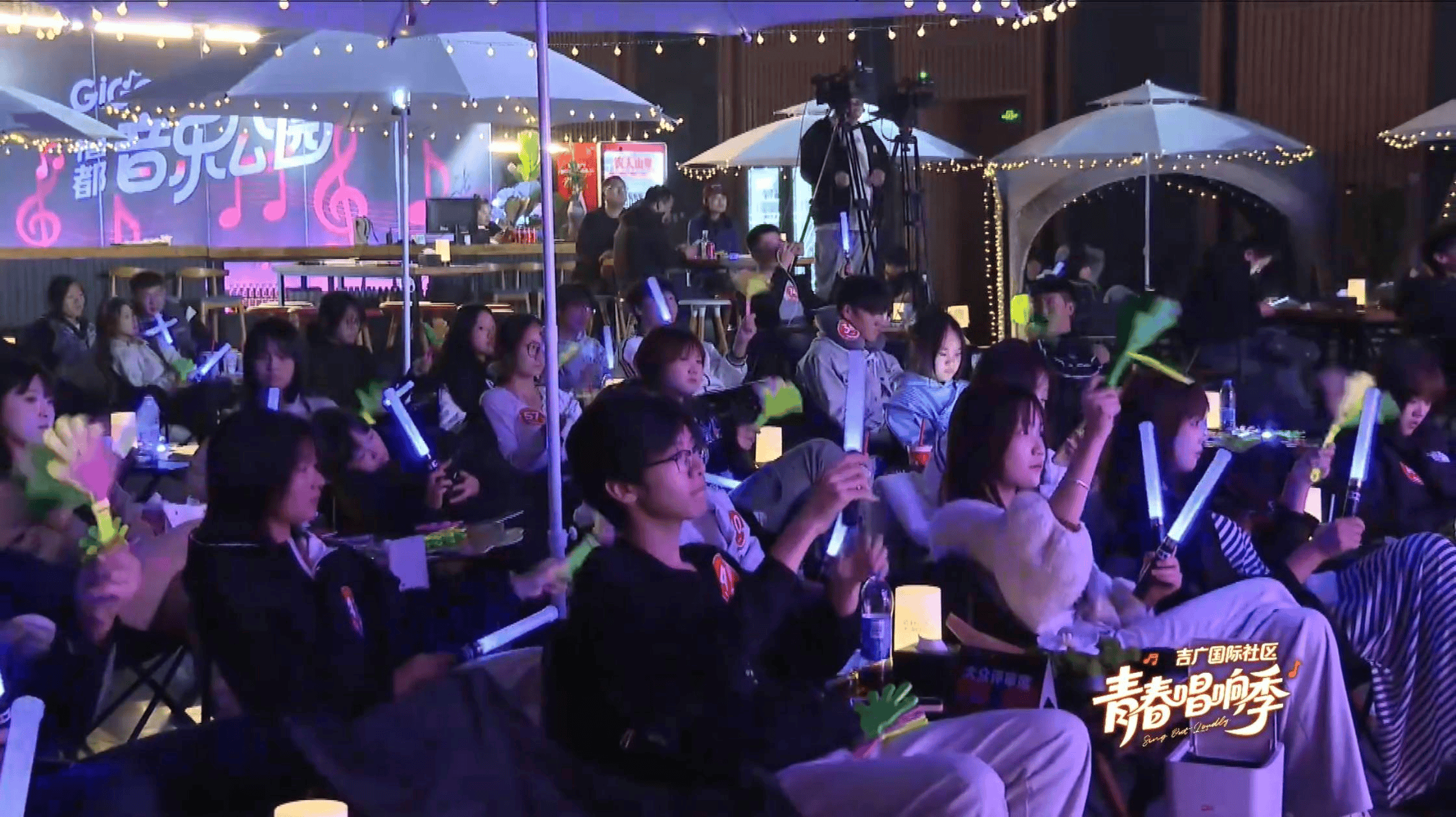 台下观众热情被彻底点燃,一边跟着摇摆一边用力鼓掌,掌声如雷鸣般响彻产业园。有观众激动呐喊:“邵泽民,你唱得太好了!太感动了!” 还有人擦拭泪水,沉浸在情感共鸣中。评委席上,各位评委也被精彩演唱打动,纷纷露出赞赏笑容,不时点头称赞。