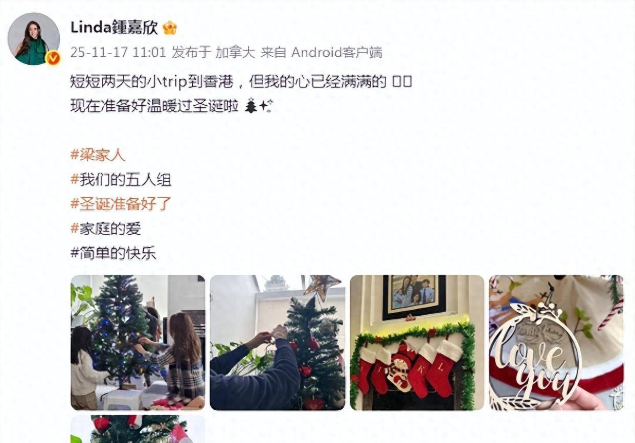 钟嘉欣在社交账号里晒出了一些家庭照片,记录了他们一家五口为圣诞节做准备的点滴。她没有用太多华丽的词句,只是简单配文“我们五个人”,却让人感受到一股平淡中的温暖。这组照片也是她在回应了网络上关于她婚姻状况的传言后,首次分享全家在一起的画面。
