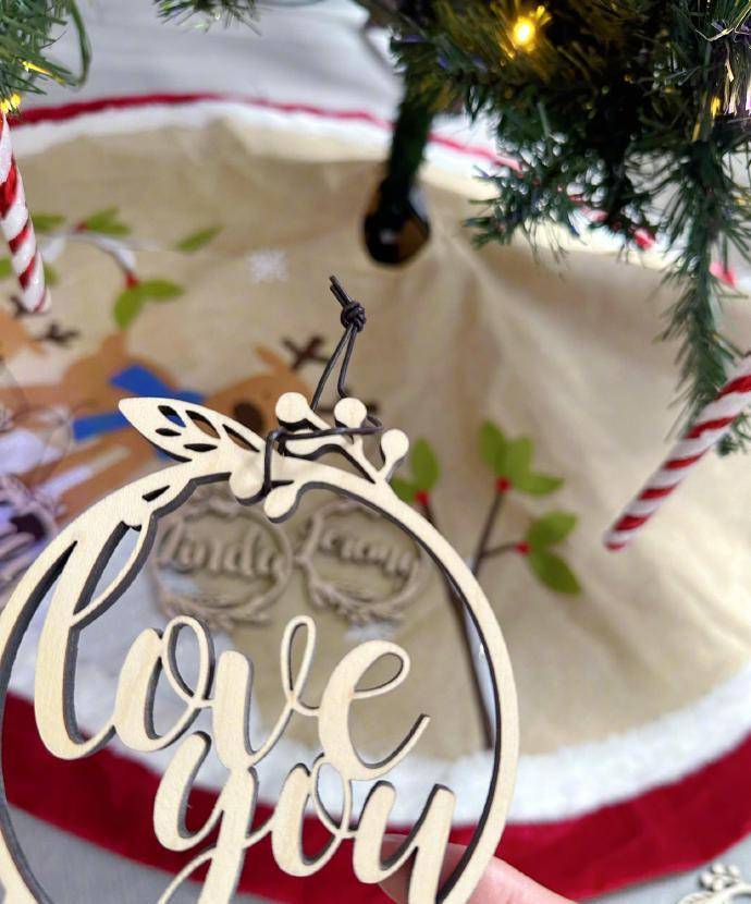 钟嘉欣还拍了一个圣诞树上的小挂饰,上面写着“love you”。这种不经意的小细节,反而成了最甜的告白。