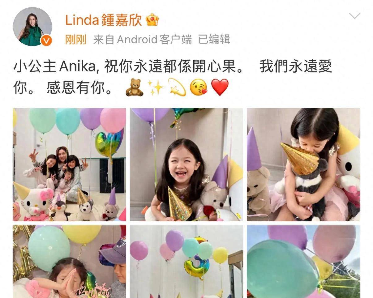 钟嘉欣在社交账号上分享了一组家庭照片,原来是她家小女儿刚过完三岁生日。她写道:“亲爱的Anika,愿你永远像现在这样快乐,成为家里的小太阳。我们都好爱你,谢谢你来到这个家。”