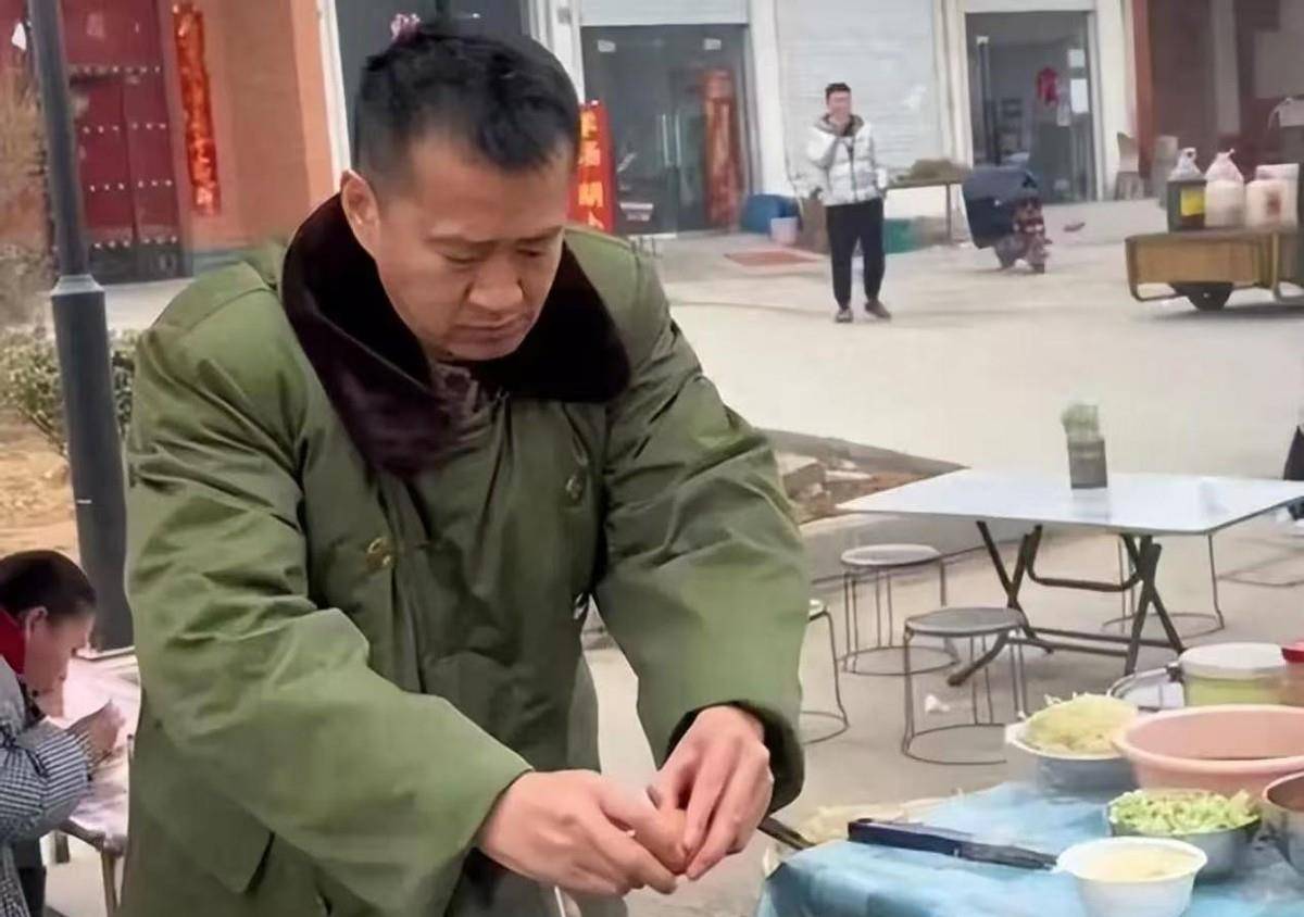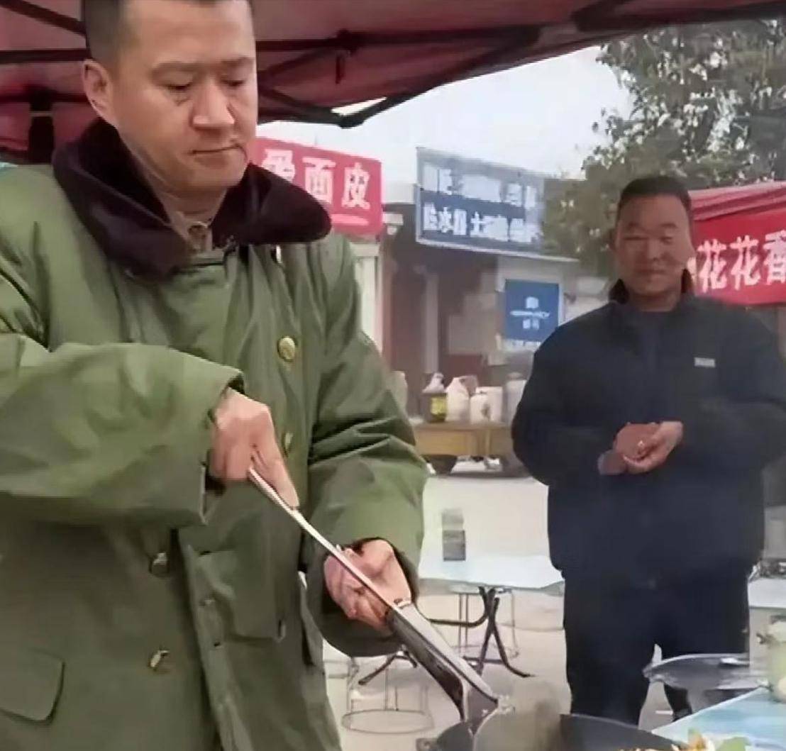 于是就有了后来网上流传的那些视频——他在老家运城的街边,穿着军大衣,熟练地翻炒着面条。动作麻利,像个老手。