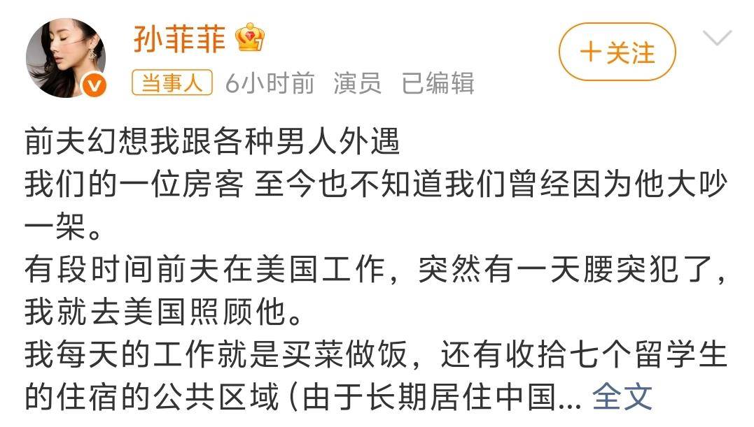 孙菲菲最近在『社交平台』上分享了自己的近况。她宣布准备重返演艺工作,同时透露已经结束了一段婚姻关系。她提到了一些婚姻中遇到的问题,包括关于孩子抚养的争议。她还说起曾经做过亲子鉴定来澄清一些事情。最近她再次发声,表示经常被无端怀疑与他人关系不当。