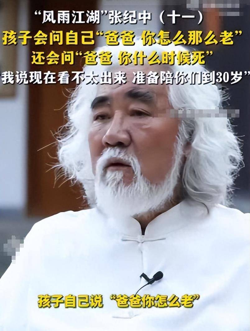 有一次,张纪中在家里陪孩子时,年幼的孩子突然问他:“爸爸,你怎么这么老?你什么时候会死?”这样的问题,从一个还不懂事的孩子口中说出来,听起来直接又让人心酸。张纪中没有回避,也没有生气,只是平静地回答:“不是我这么老,你也会慢慢长大变老。至于我什么时候死,现在还不知道,但我有决心陪你到30岁。”