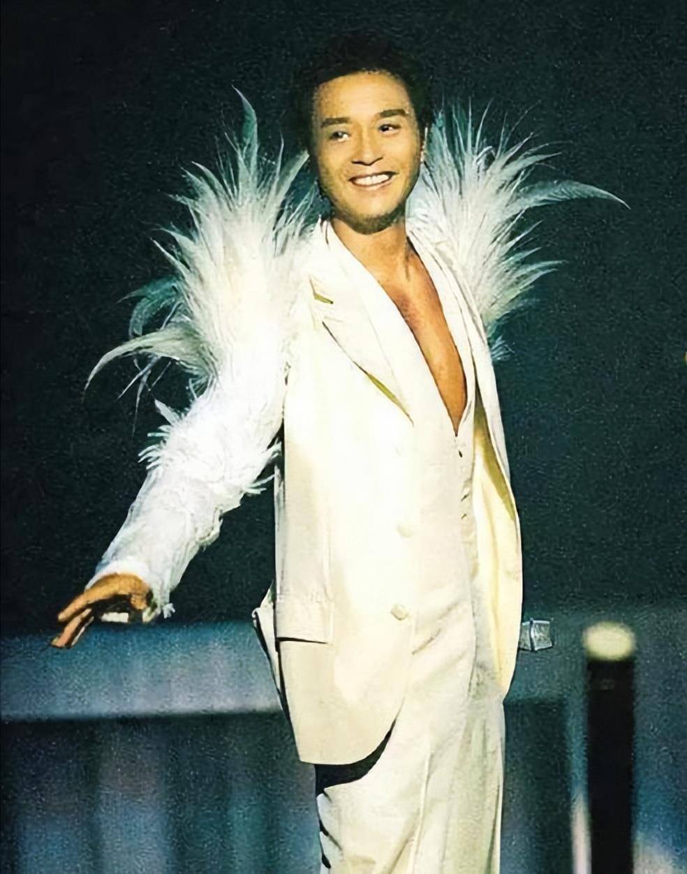 除了提携后辈,『张国荣』在艺术上的探索也常常走在时代前面。1997年复出举办的“跨越97演唱会”,他穿着红色高跟鞋👠、留着『长发』的造型引发了巨大争议。当时有媒体用“人妖献唱”来形容,电视台甚至打出“儿童不宜”的警告⚠️。