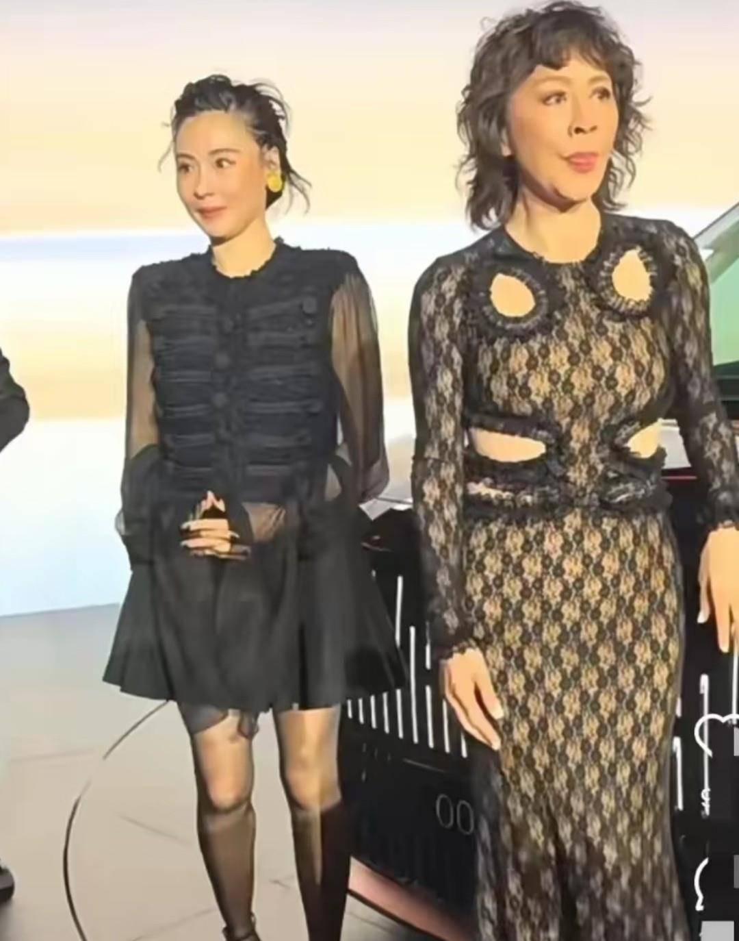 回想今年四月的那场商业活动,两人同时亮相时状态大不相同。当时『张柏芝』穿着黑色连衣裙👗,『打扮』精致却显得有些拘谨;刘嘉玲身着蕾丝礼服,表情也略显僵硬。