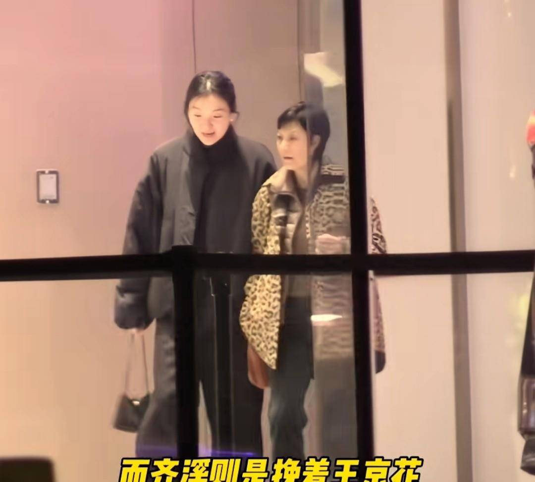 『齐溪』也穿着宽松的棉服和阔腿裤,风格和『王传君』有点像,但穿出来的感觉完全不同。『王传君』看起来随性自在,『齐溪』却穿出一种简约的精致感。她性格很好,一路和王京花聊得很投机,让人觉得特别亲切。