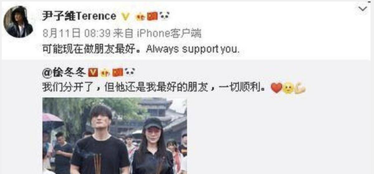 分手后,关于两人复合的消息时不时就会冒出来。最夸张的一次,是说『尹子维』送了价值五百多万的豪宅求复合。这些传闻让『徐冬冬』不得不亲自澄清,用简单的六个字否定了谣言。渐渐地,大家发现这段感情里,真正放不下的是『尹子维』。