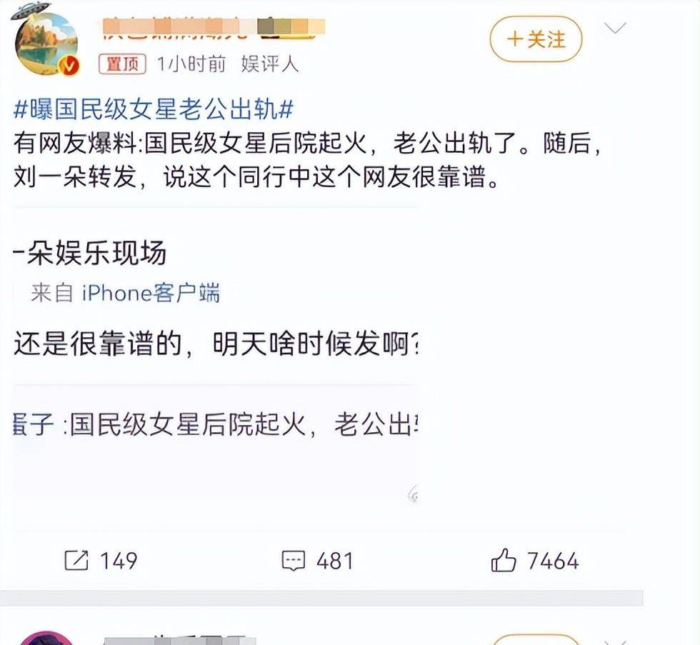 接着,又有狗仔放话说要曝光一位国民女星的丈夫出轨。消息一出,网友就开始猜是谁。有人提到『刘涛』、『秋瓷炫』、洪欣,因为这几位女演员以前演过不少深入人心的角色,算是很多人心中的“国民女神”。而且她们的感情生活之前也或多或少传出过一些消息,所以大家格外关注。不过具体是谁,还得等后续爆料。