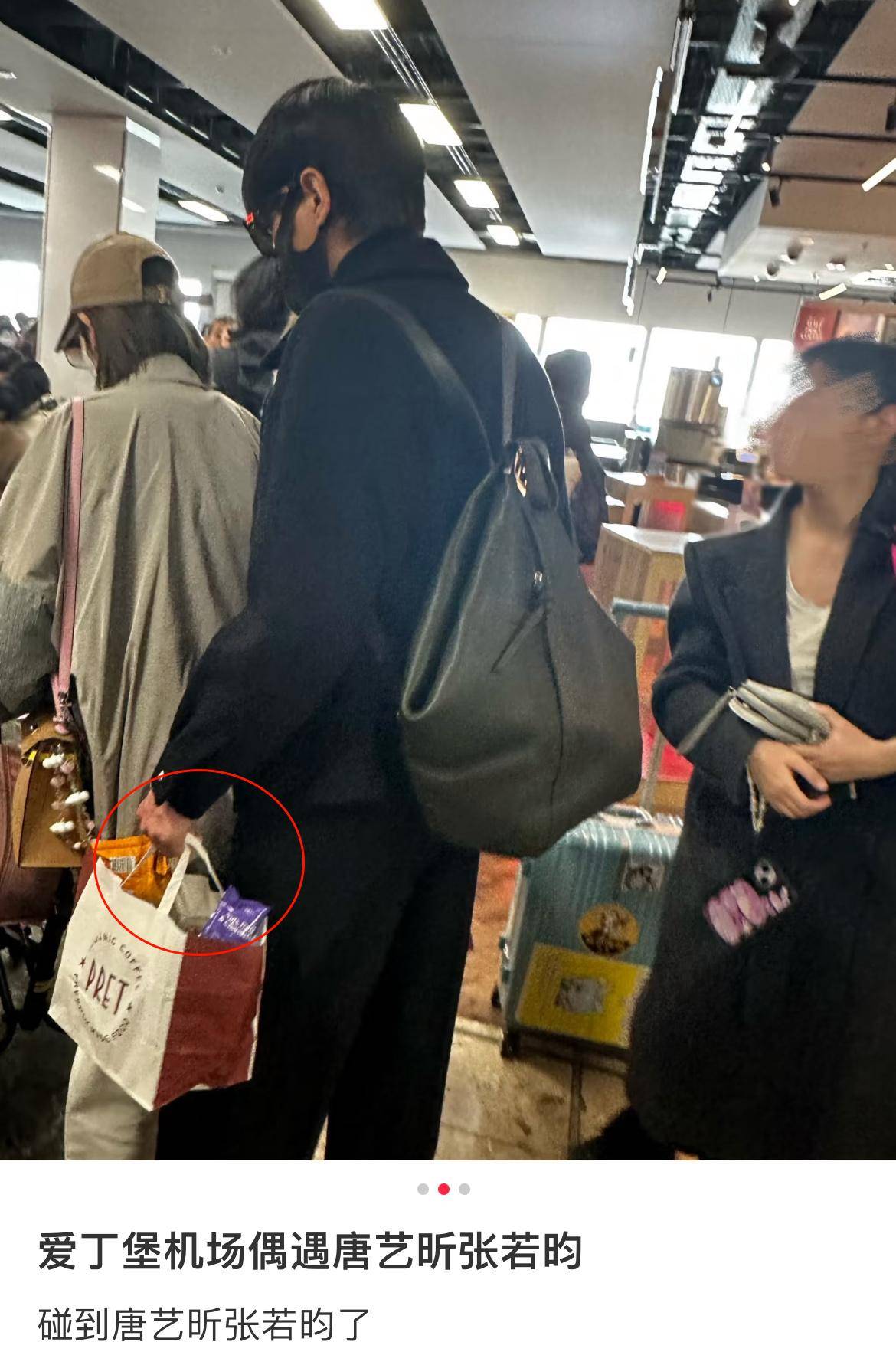 『张若昀』站在那里等行李,『唐艺昕』的爸爸则坐在椅子上和外孙女聊天,老人家的眼神非常慈爱。有网友说这个画面太真实了,很温馨;还有人认为『唐艺昕』和父母一起出去旅游,是一件很幸福的事情。