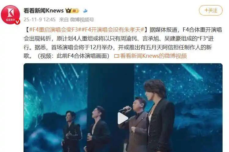 重组巡演的计划刚刚浮出水面,就传出了令人意外的消息:原本的四人组合变成了三人。更让人惊讶的是,媒体用“踢出局”来形容朱孝天的处境。这个转变来得太快,让沉浸在重逢喜悦中的粉丝们措手不及。